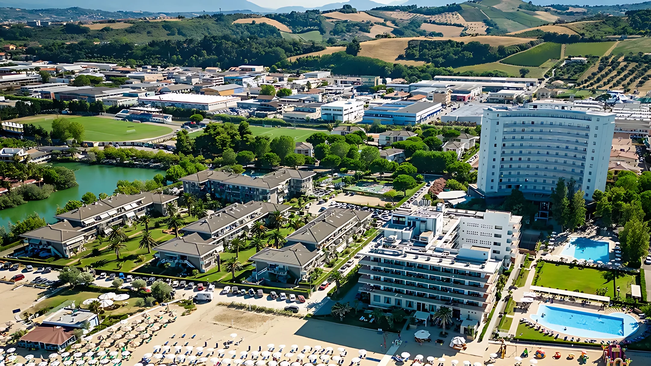 L’Hotel President 4 stelle è situato direttamente sulla spiaggia senza strade da attraversare. Le camere, con vista mare o collina, sono dotate di aria condizionata, Wi-Fi gratuito, minibar e TV. Le strutture includono una piscina all’aperto, campi da tennis e beach volley, e un ristorante “La Rotonda” che serve cucina abruzzese e internazionale.