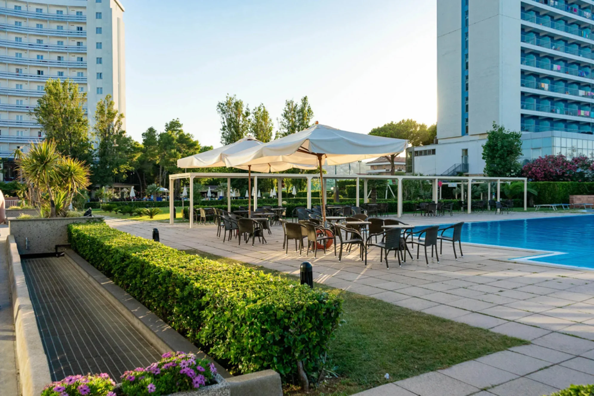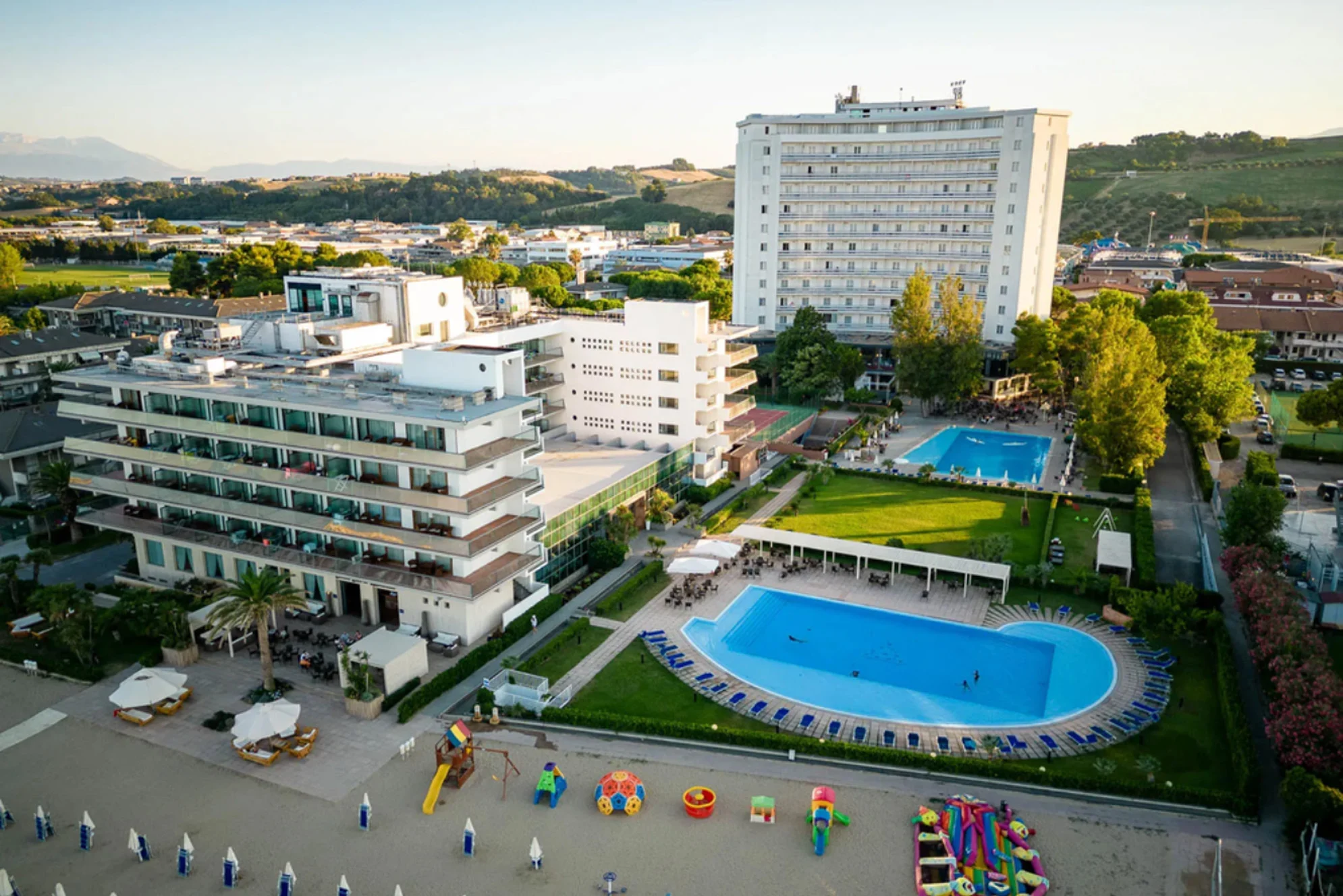 Entrambi gli hotel condividono servizi e aree comuni all’interno di un parco alberato di 15.000 m²